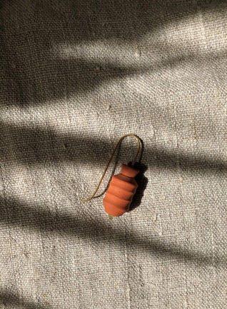 Ode à la période antique, les bijoux amphore de la collection Artemis viennent parfaire vos tenues ! Manifeste d’un artisanat précieux façonnée par le studio Flake, cette boucle d'oreille en faïence tournée à la main, puis montée sur un fermoir en vermeil à Paris unissent avec beauté l’œil affûté de la directrice artistique Pauline Glaizal et la main virtuose d’Henry Carrelet, Atelier Dipneuste, céramiste de père en fils.